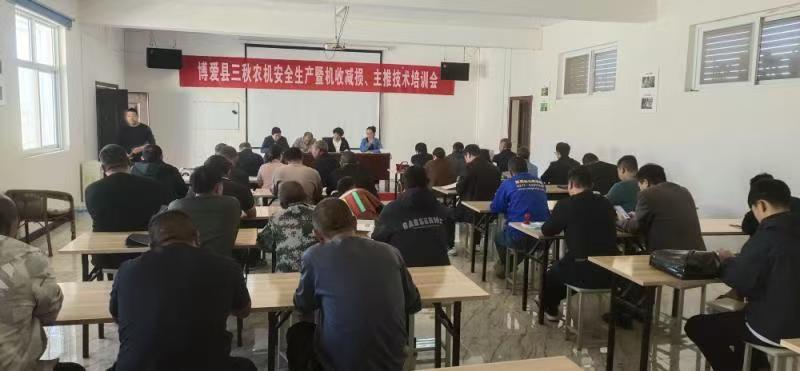 9月25日上午,博爱县“三秋”农机安全生产暨机收减损、主推技术培训会在金城乡农技区域站顺利召开。各乡镇(街道)农机专干、全县农机科技示范主体、示范基地负责人及县农机中心工作人员共50余人参加,为即将到来的秋收农忙季凝聚共识、夯实能力。 会议首先传达《博爱县2025年“三秋”农机化生产服务工作方案》,为全县“三秋”农机化生产划定清晰“路线图”;随后聚焦实操需求,开展玉米机收减损技术与农机安全知识专题培训,既传“增收技巧”,又筑“安全防线”;同时安排部署基层农机推广体系建设工作,深入解读项目主推技术的核心内容,并现场为参会主体发放基层农机推广体系建设项目物化补助,让政策红利直达一线。 最后,县农机中心孙主任对关键工作再强调、再部署,要求重点抓好“三秋”农机安全管理、应急服务保障、玉米机收减损落地及主推技术示范推广四大任务。此次培训会的召开,不仅统一了思想、提升了技能,更构建起“安全兜底、技术赋能”的双重保障,为博爱县今年“三秋”农机生产高效、安全推进注入强劲动力。
